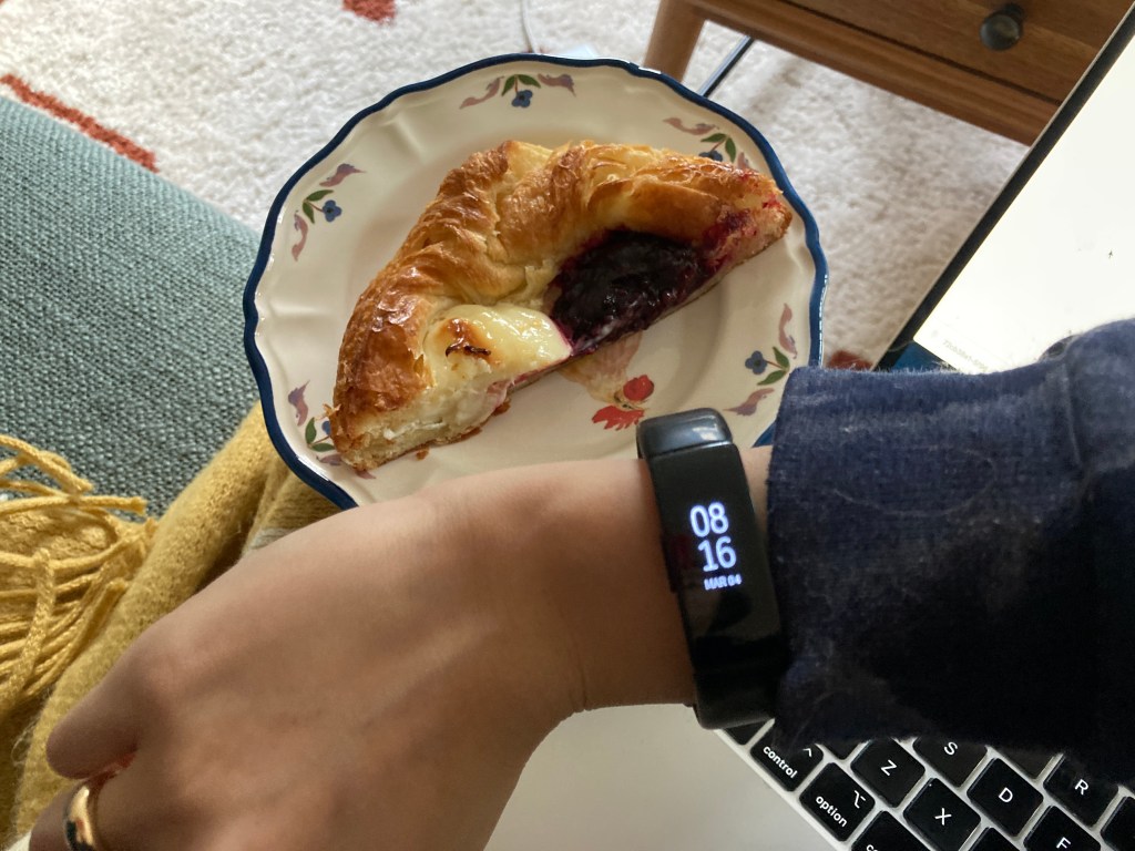 6:23 AM. My boyfriend’s woken up. Every Friday, he and his friends run to a local bakery and get pastries (he has a running vest that he uses to carry them back). Coconut’s woken up too and curls up on my lap as I continue studying.