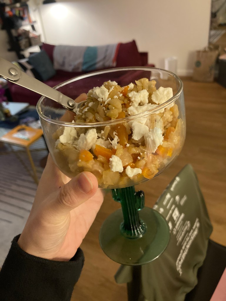 Dishes that worked: Claire Saffitz’s miso buttermilk biscuits, Alison Roman’s lemony tumeric tea cake, a simple-but-giant pasta bake. Dishes that didn’t: Alison Roman’s coconut banana cream pudding (the pudding never set and was ultimately unsalvageable—I wanted this to work so badly I even called a baking hotline for advice), Moosewood’s Brazilian salsa (why was it….grey?), and an arugula salad recipe from Pinterest.
