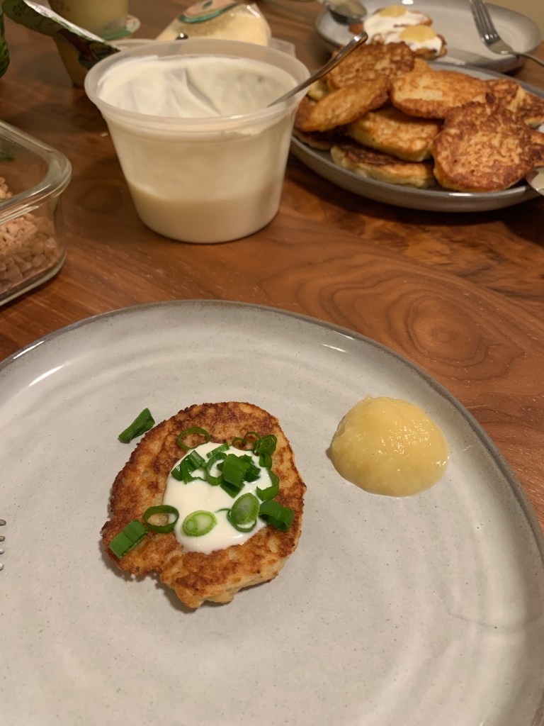 Okay, moving on from March! I did a lot of cooking in April, so here’s a culinary photo dump: menestra (a Spanish veggie stew), caramel brownies, pancakes from scratch (truly the best they’ve ever turned out — the key was to cook them on low heat, instead of blasting them as I usually do), latkes (not homemade; there was a sale on Manischewitz latke mix post-Passover. Wouldn’t re-purchase, but still pretty convenient).