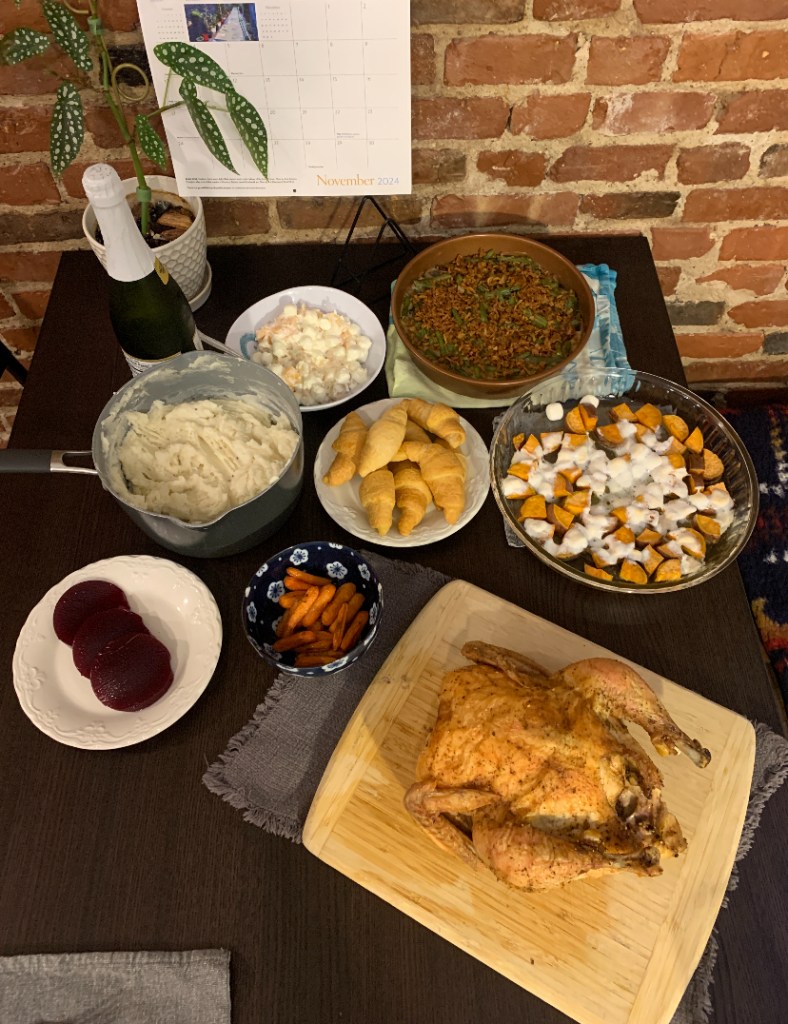 - Cooked a ton. As I said earlier, cooking and baking became somewhat of an outlet for me this semester. These photos don’t even cover everything I’ve made recently: sweet potatos with tahini butter (the rice bowl variation was my sister’s idea), pumpkin soup, Yossy Arefi’s oatmeal chocolate chip cake, a Thanksgiving feast (can you spot the Hawaiian salad!?), classic veggie soup, and pineapple-coconut baked oatmeal.