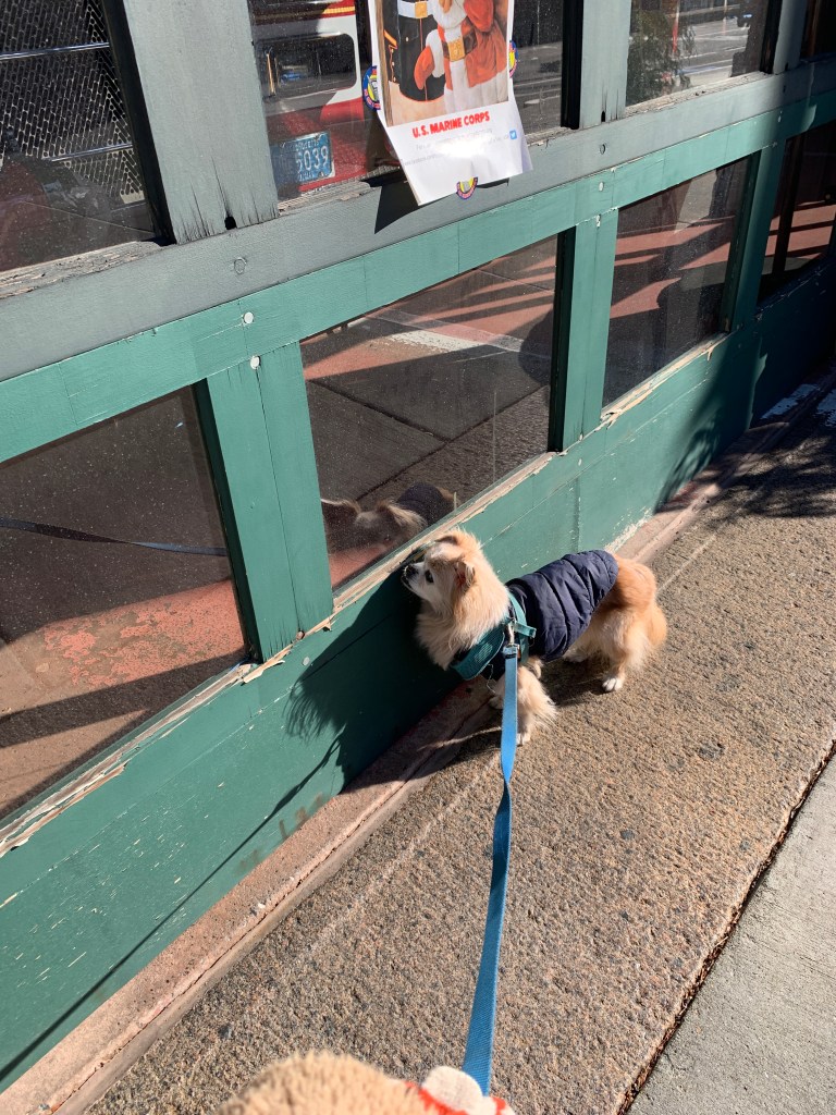Speaking of Coconut, he continues to be obsessed with the fire station next to my apartment. During the summer, the firefighters would often sit in the garage and give him treats, but now it’s so cold they keep the garage doors shut. It doesn’t stop him from waiting outside every time we pass, though. One time they even opened the doors just for him, which was really sweet, but now he thinks he just needs to wait it out… After a while I carry him away, but gosh it’s adorable. How could anyone resist that face!?