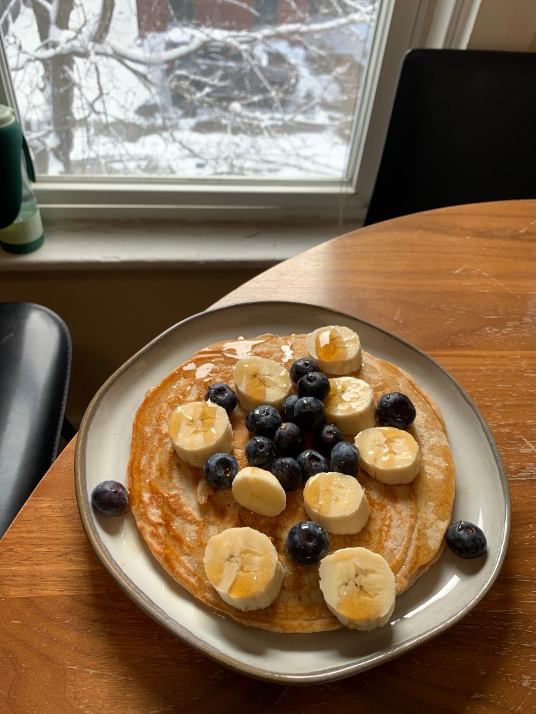This morning I woke up to snowfall and Coconut resting his chin on my arm. After taking him out, I studied German for about an hour before making whole-wheat pancakes for breakfast (all in PJs, of course). It was such a nice, quiet morning. I mean, seriously, does it get more peaceful than this?