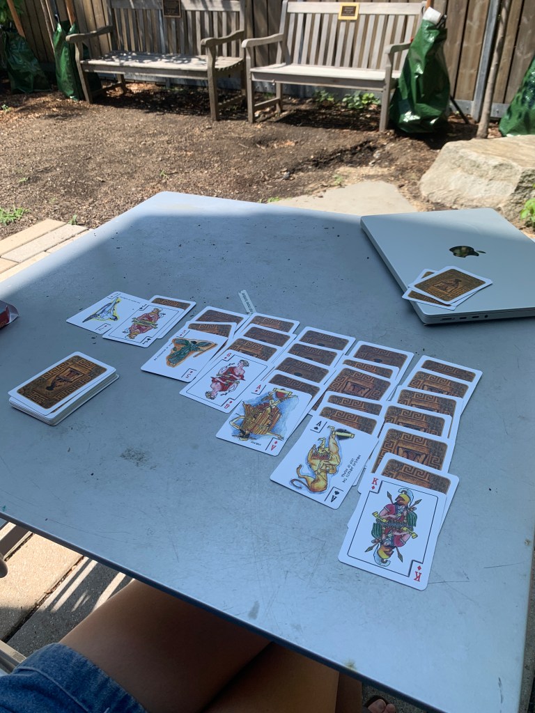 As usual, I’ll end with some recent snapshots: views of the Boston skyline from my last Esplanade run (!!) and East Boston; an art exhibit at the ICA Watershed; a lasagna I made to use up noodles and a can of tomato sauce before the move; a game of Solitaire with actual playing cards (sooo satisfying); a recent dinner of couscous and roasted veggies; a relaxing Saturday morning spent reading from the yoga mat (in the bowl is my latest breakfast obsession: cottage cheese with berries and maple syrup); the Middlebury Language Pledge, which was in effect when we visited during the Vermont trip; and my prize for winning my library’s summer reading challenge.