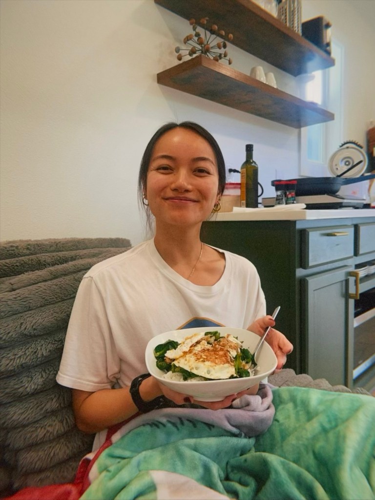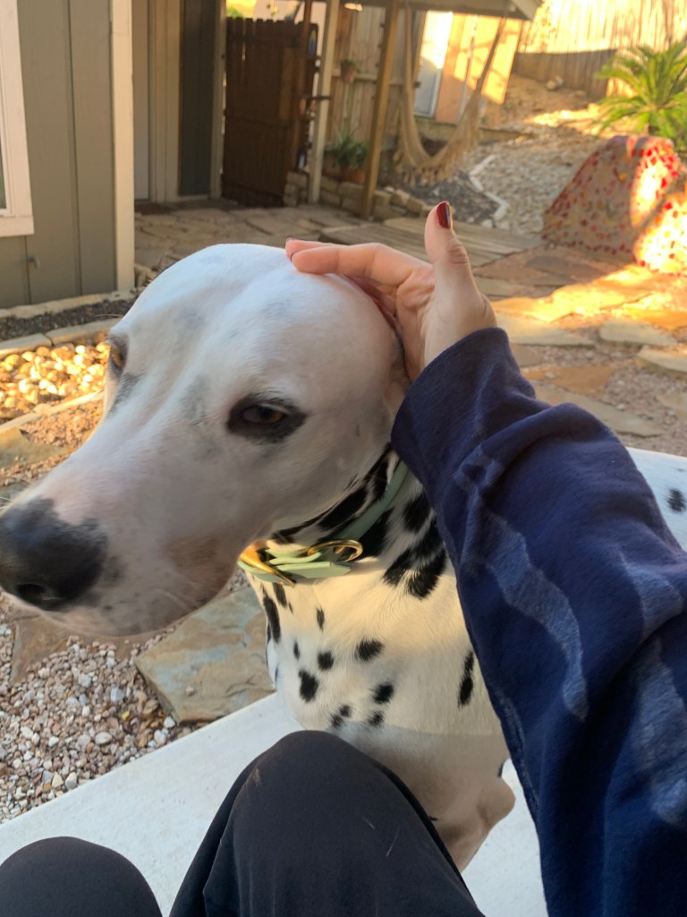 Ending with a few camera roll snapshots: discovering that HEB sells my favorite ice cream, Blue Bell’s Birthday Cake (I’ve already repurchased!); enjoying a lovely cup of golden milk; first time painting my nails in a while — the color (and ring!) are courtesy of my grandma; my Airbnb host’s friendly Dalmation; some pie and reading time at Cherrywood Coffeehouse (such a good vibe!); and my two latest food obsessions: Texas toast and chopped almonds on sautéed kale and tomatoes.